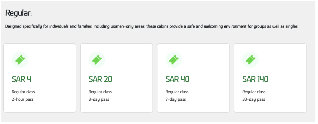 Для простого входа на территорию достаточно базового билета за 30 SAR, также есть комплексные предложения, включающие в себя аттракционы и fast track к ним.
